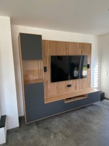 Moderne Wohnwand mit Lamellenpaneel